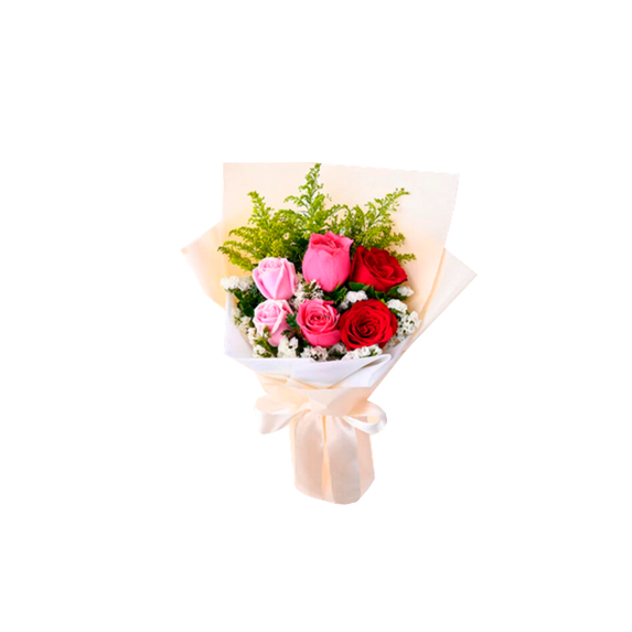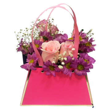 HermosoImitación de Bolsocon 6 Rosas Rosadas y flores en Color Pastel |