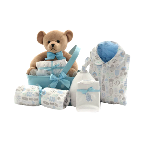 1 Latonita contenedora1 Peluchito1 Juego de Sabanita ( Sabana y Funda)1 Mantita1 Body1 Gorrito1 Par de medias1 baberoEl presente va envuelto delicadamente en:· Papel Celofán· Moño grande· Tarjeta Recordatoria |