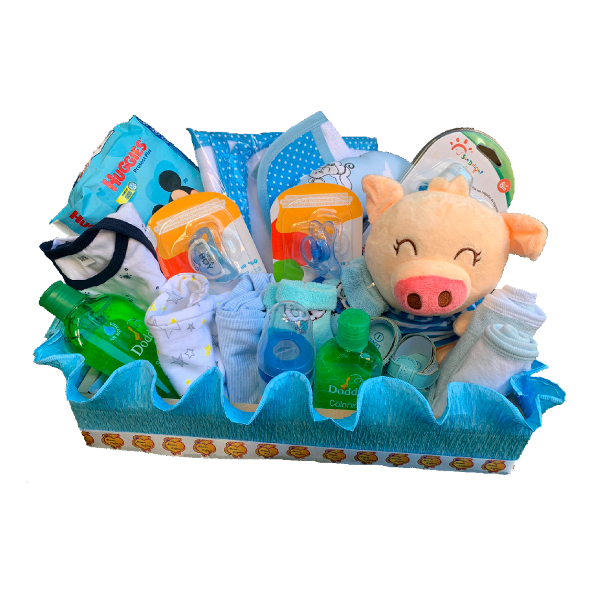 1 Canasta de mimbre1 Globo1 Almohadita1 Frazadita1 Par de toallitas1 álbum Ó portaretratos2 Chupetes1 Cadenita para chupete1 Biberón pequeño1 Ropita ( 1 Body y un conjuntito de 2 piezas)2 Par de medias1 Paq. pañal Recién Nacido1 Kit de Aseo (Perfumito, Shampoo)1 Babero1 PelucheEl presente va envuelto delicadamente en:· Papel Celofán · Moño grande· Tarjeta Recordatoria |